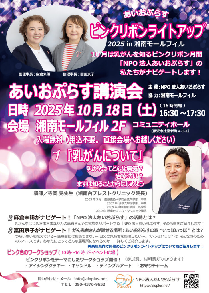 乳がんをはじめさまざまながんの患者さんやご家族をサポートする「NPO法人あいおぷらす」。麻倉未稀(副理事長)がその活動をご紹介します!